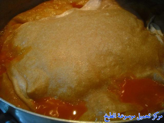وبعد ذلك نضع العجينه على المرق مثل الصورة وتغطى القدر