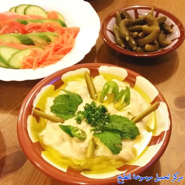 نضع المسبحه في صحون التقديم و نزين ببضع حبات من الحمص و زيت الزيتون