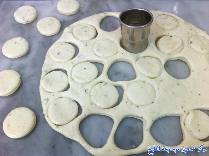 إفردي العجينة على سطح مدهون بالزيت وقطعيها إلى دوائر صغيرة وصفيها في صينية الفرن.