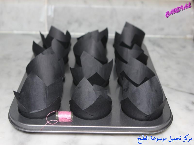 وزعتها في قوالب الكب الكيك من غير ما أمسحها بالزيت على طول